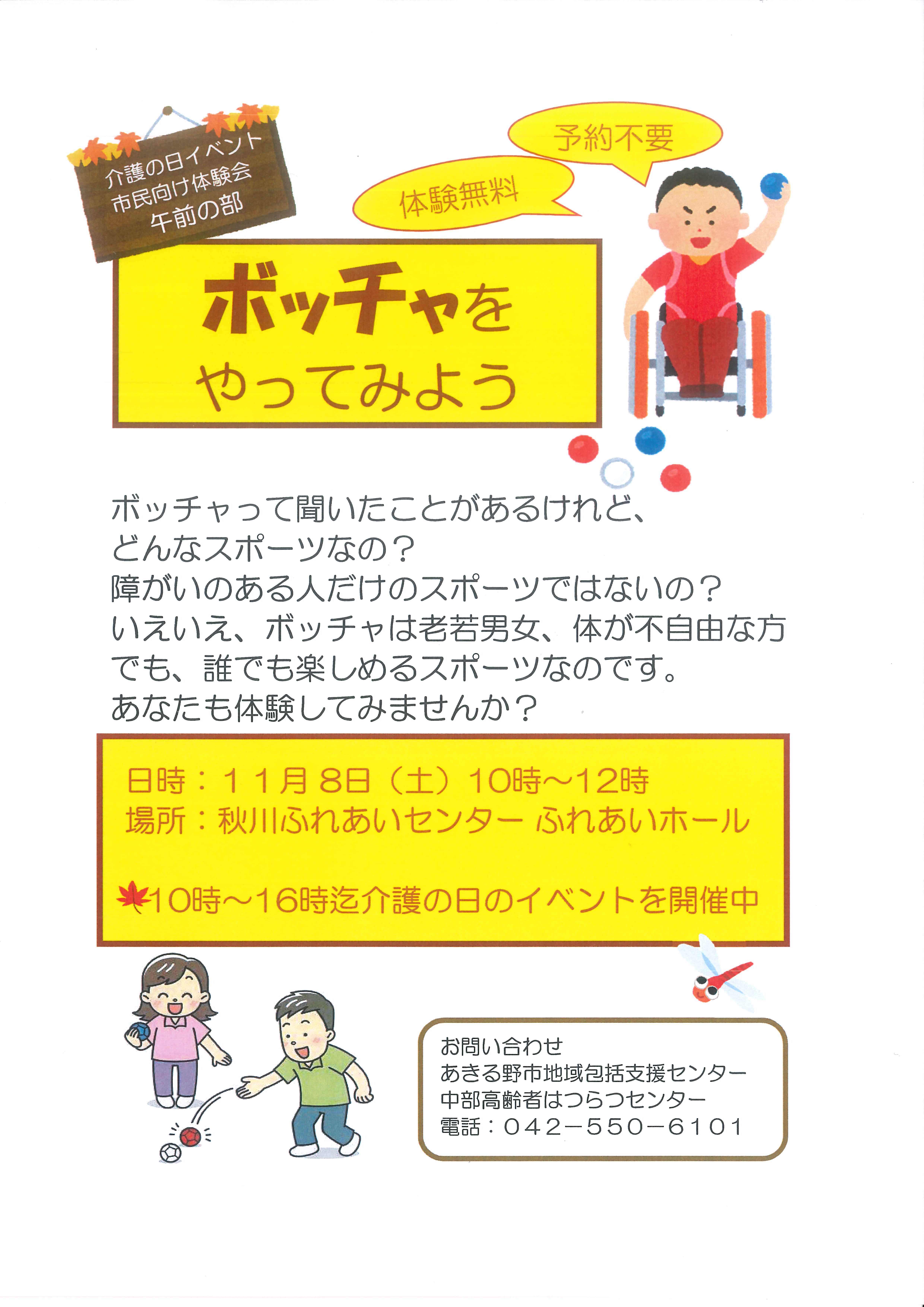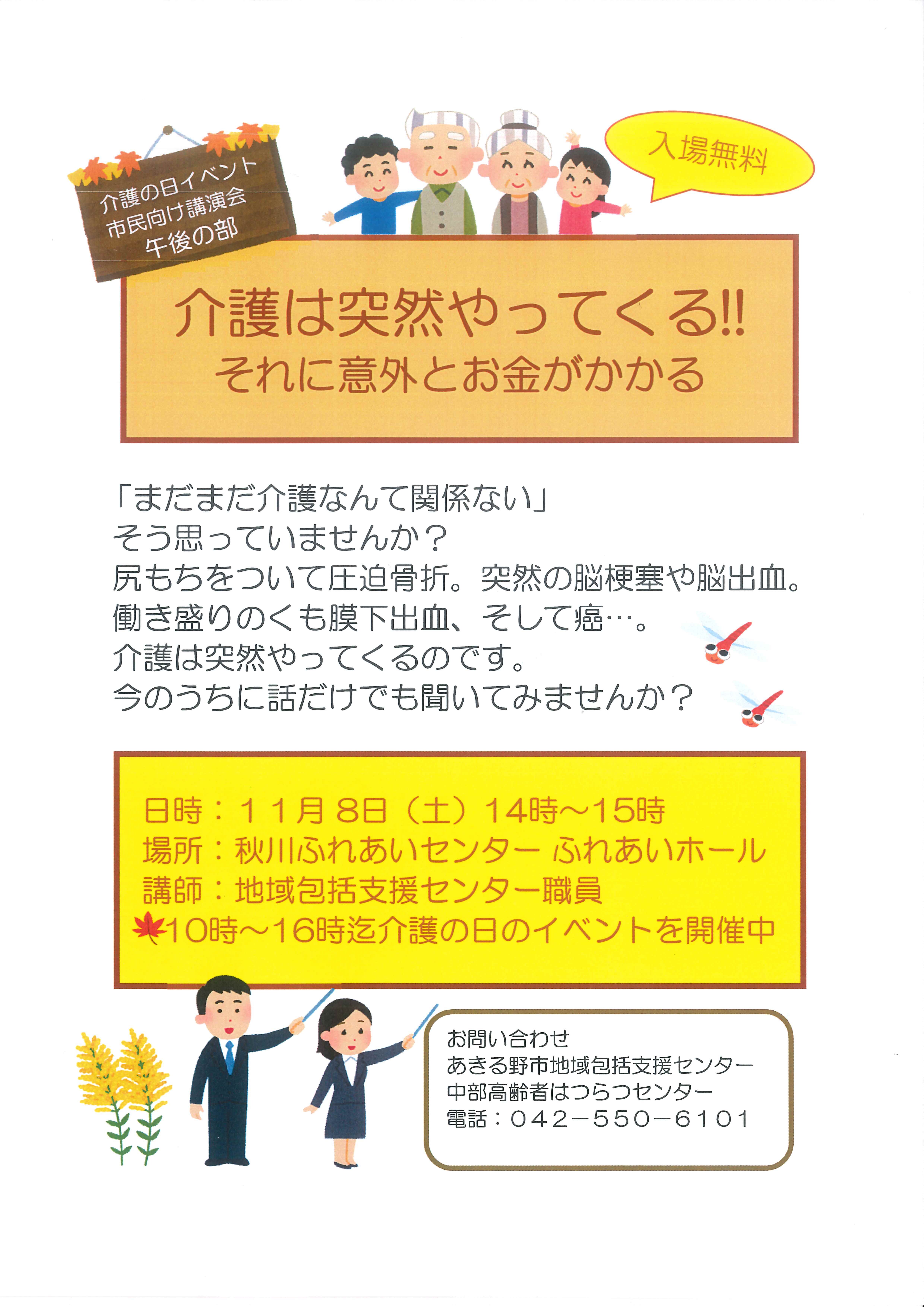 11/8(土)に  秋川ふれあいセンターで介護にまつわるイベントがあります。